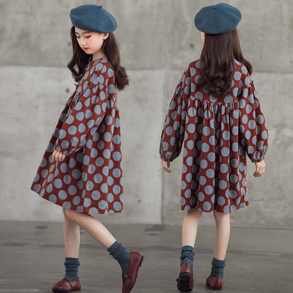 ワンピース キッズ 長袖ワンピース 子供服 女の子 春 秋 ドット柄 子供ドレス ジュニア チュニック フレア おしゃれ 可愛い カジュアル 新品 110 1 130 140 Y アユストア 通販 Yahoo ショッピング